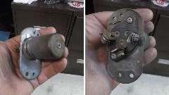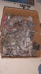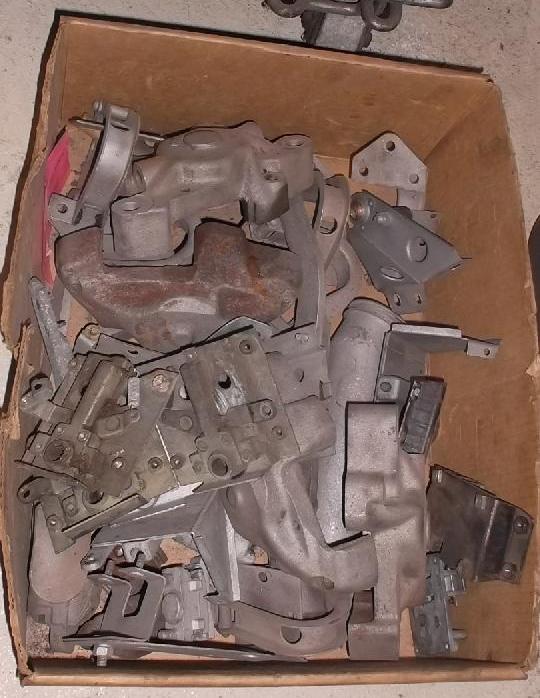 Groveling around more stacked things in his basement we find excess crankshafts, a box of MGA brackets, hinges and latches, and then one item that makes the trip back north all worth the time and miles. One original MGA dipper switch. SCORE! Finally. That puppy will get buffed out and go into my car first thing tomorrow.