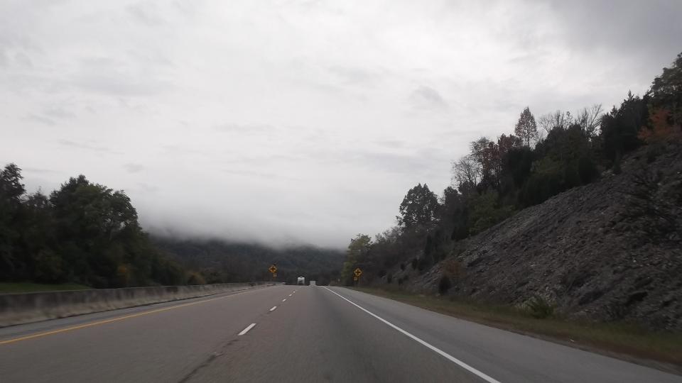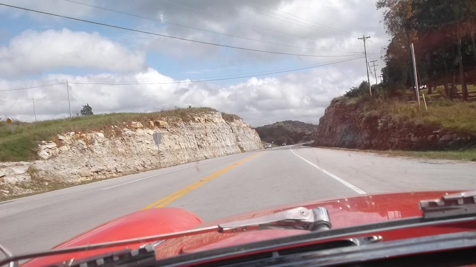Cruising south today through Kentucky (75dF and sunny) into Tennessee via US-150 and US-25. Lots of chiseled rock formations followed by a drive up into the clouds, followed by light rain (after I thought we were done with this stuff). Final destination was nephew's place (cousin to navigator) in Sevierville, TN (close to Pigeon Falls) where we were greeted by Mopar, the 2015 Dodge Challenger retro-car. Not MG, but could be fun (if you like that sort of stuff). Family reunion and late night chat, so we will defer MG business until tomorrow.