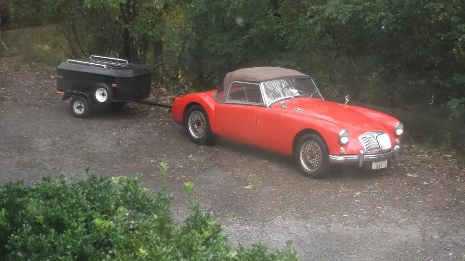 And for a bit of a treat, Ron has this nifty all aluminum trailer for his MG service. The Aluma 8114 model number designates the flat bed is 81-inches wide and 14-feet long. Considering location of the single axle, you likely want to load the 13-foot MGA or MGB with a foot of rear overhang and two feet of empty space at the front end. For more information see article TH-405 in the Trailer Tech section.