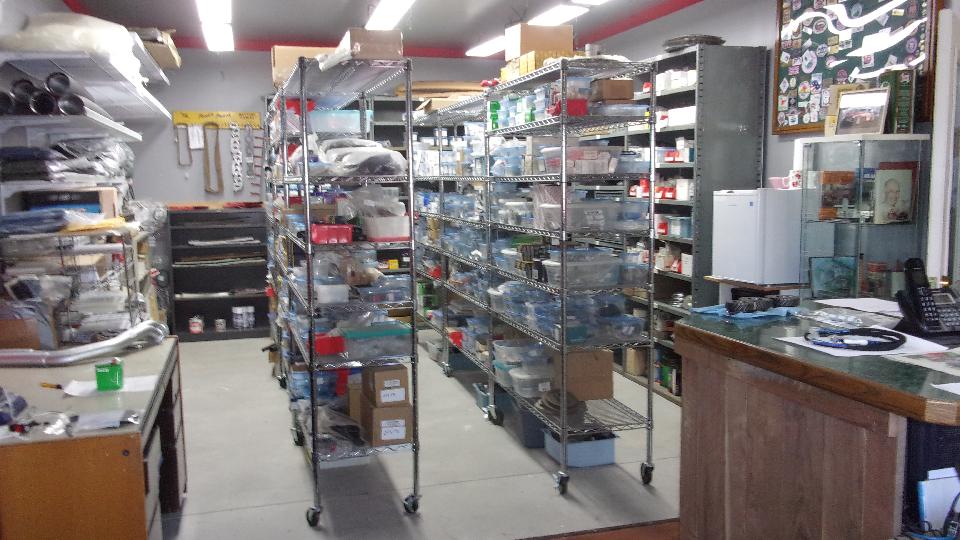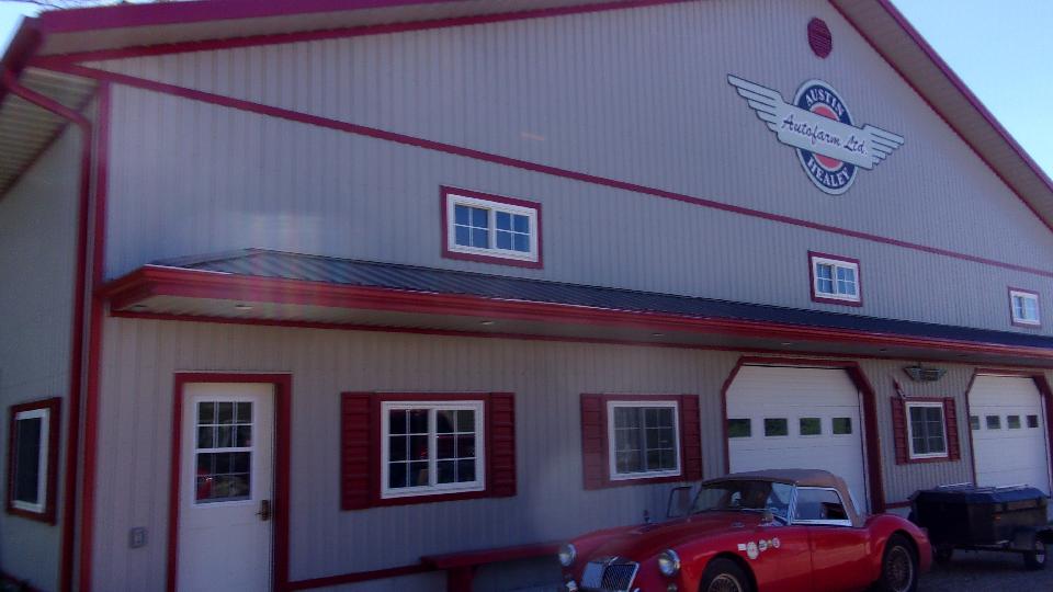Then we were off to visit Autofarm Ltd in Monkton, ON. Here we have three generations of Austin Healey restoration specialist, but they also work on other British cars. Just off the front office area we found a large inventory of new Austin Healey parts which will supply a large part of Canada on demand as well as the internal restoration projects.