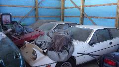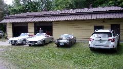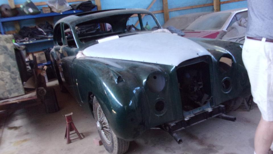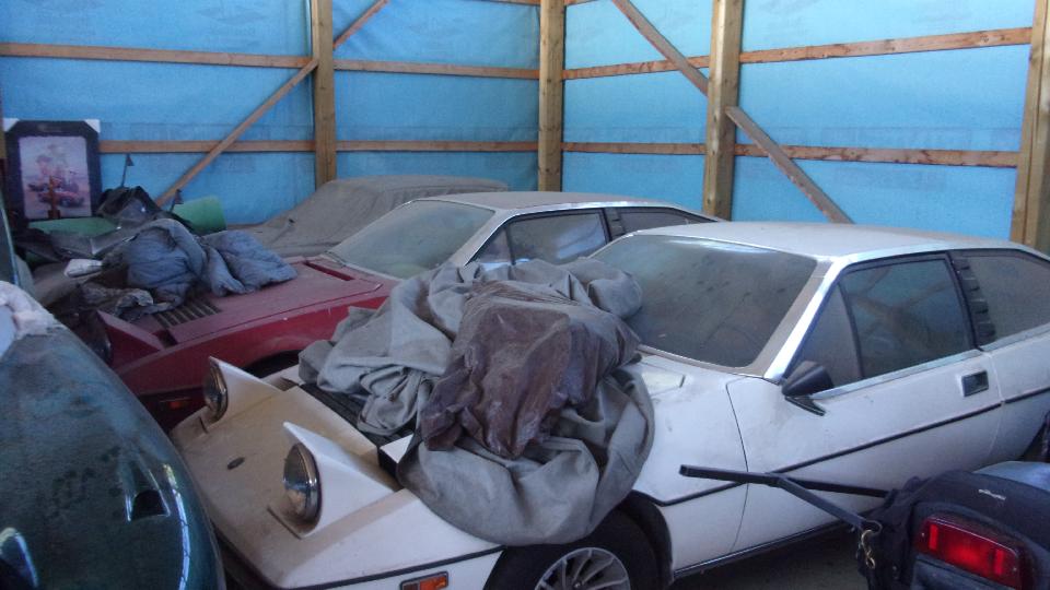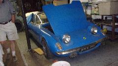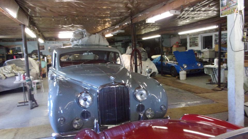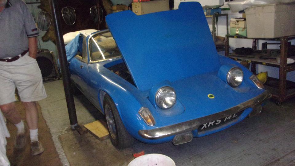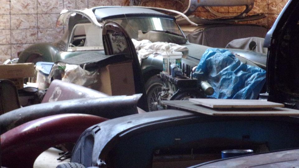Jaguar MK9 in process, a pair of Lotus Eclat, and parts of two Lotus Elan that may one day become one.