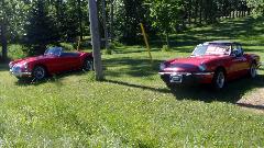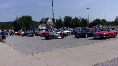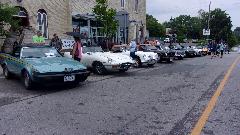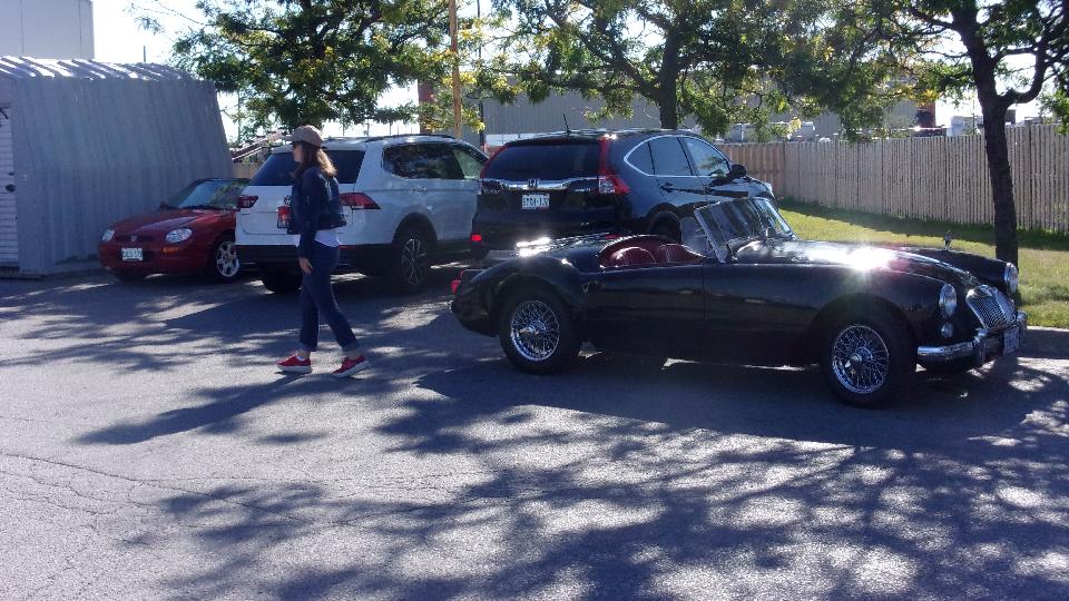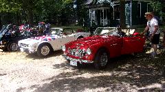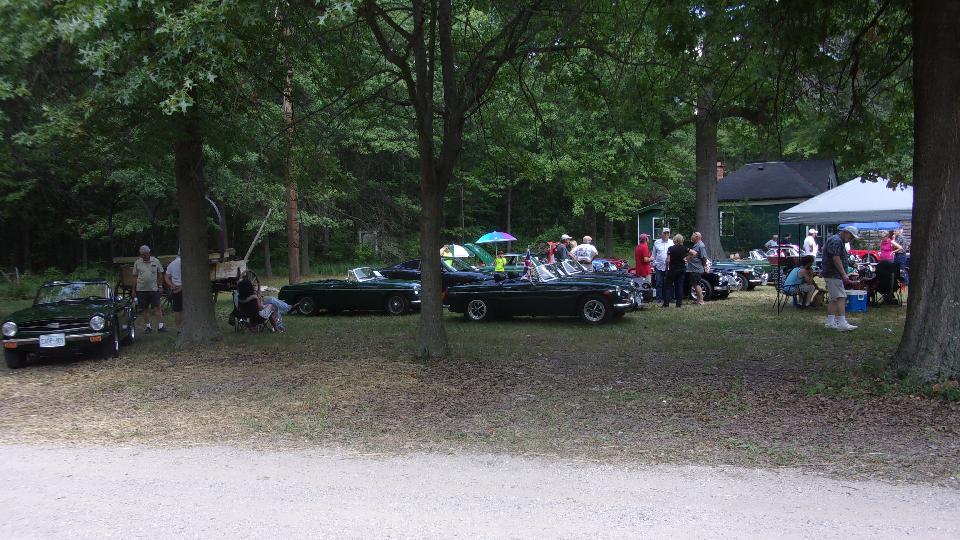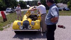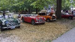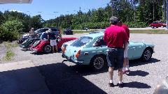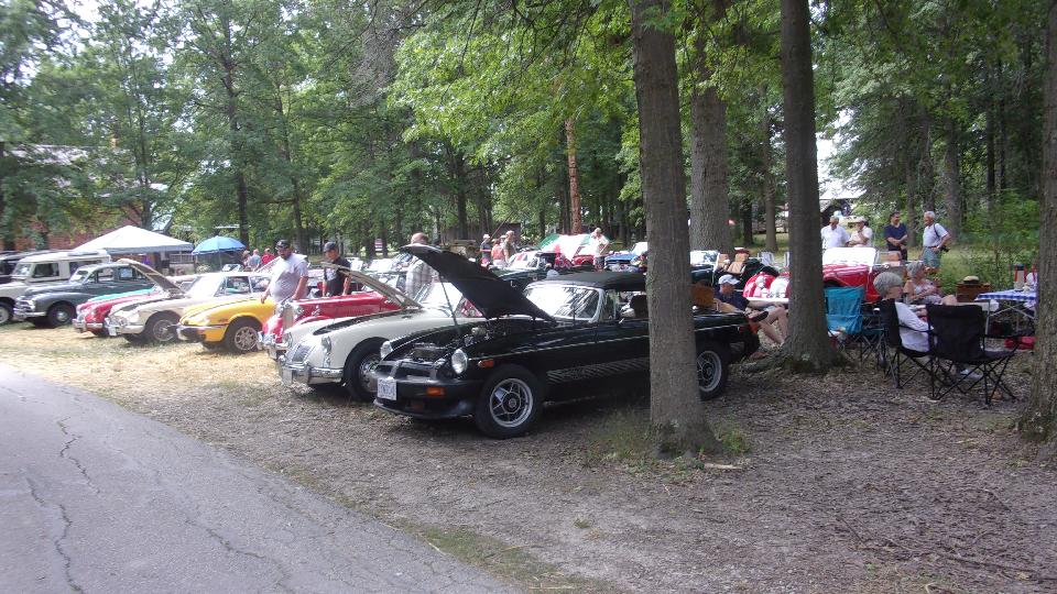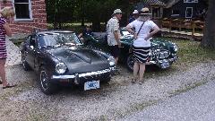 One triumph GT6+ with another "big" Healey. I was running out of foot stamina as the show was winding down. I had plenty of time to chat with a few members of Windsor Detroit MG Club, losing the shade with the hot sun overhead, and I think most people were glad when it was over and we we could go make our own breeze. We were anxious to find some AC and WiFi, and the rest of the day was consumed with email, tech questions, and finally posting the photos and notes for your entertainment. New plans for tomorrow.