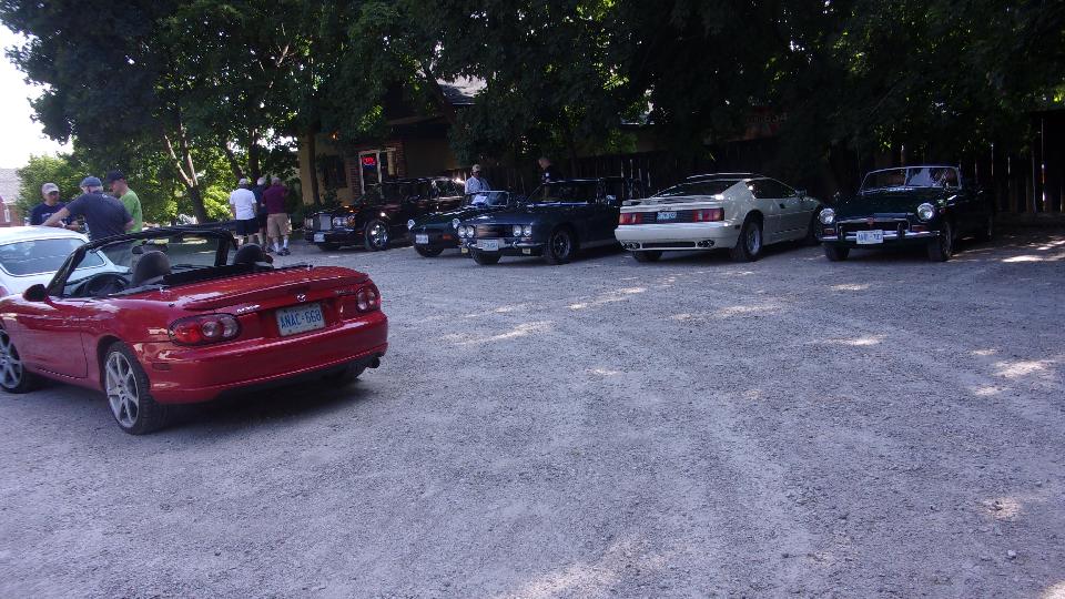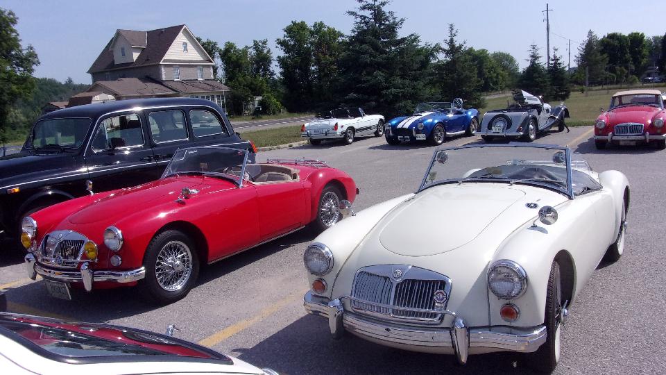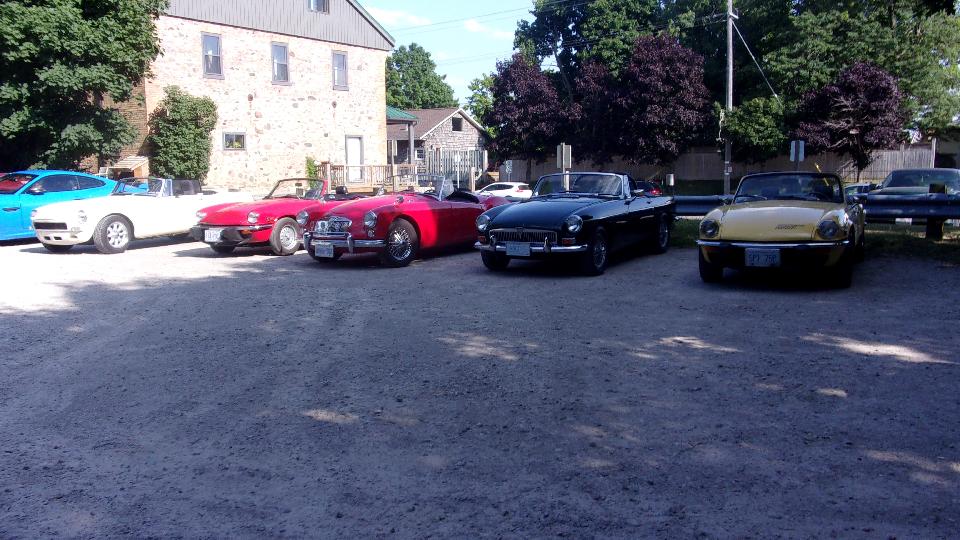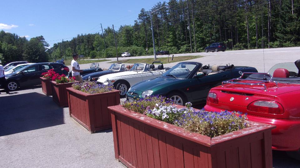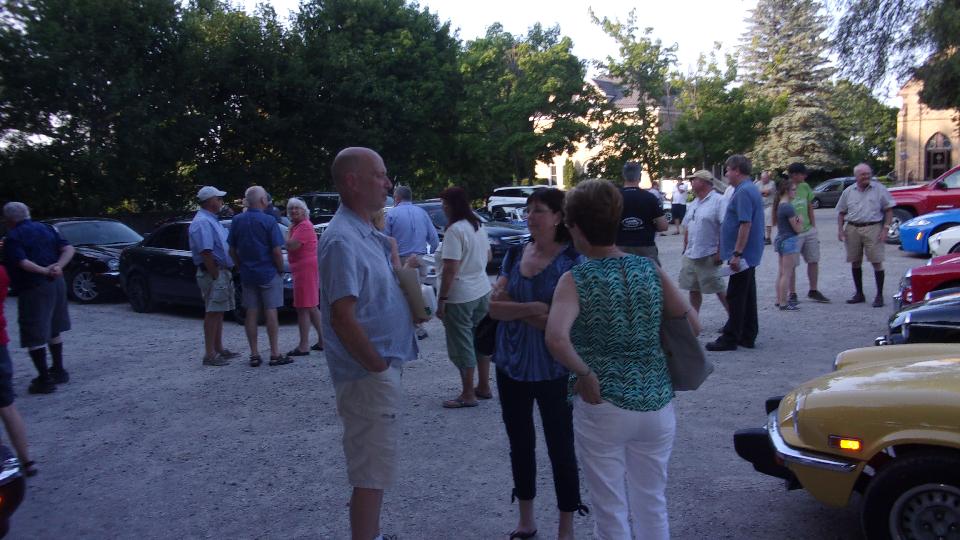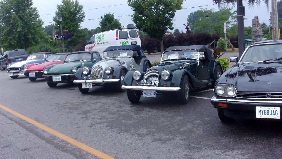 Made our way north for an evening meeting with Georgian Bay British Car Club in Collingwood, ON. Arriving a bit early, maybe 10 LBC in the car park, but lots more came later. Must have been at least 40 people, and apparently they knew we were coming. Featured history slide show for the evening was info on the MGA. Then the MGA guru got to do the pony show for a while, extending to at least 20 minutes when folks kept asking questions. Good time here, but then had to blow town for points west.