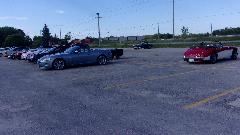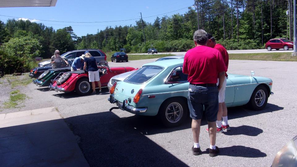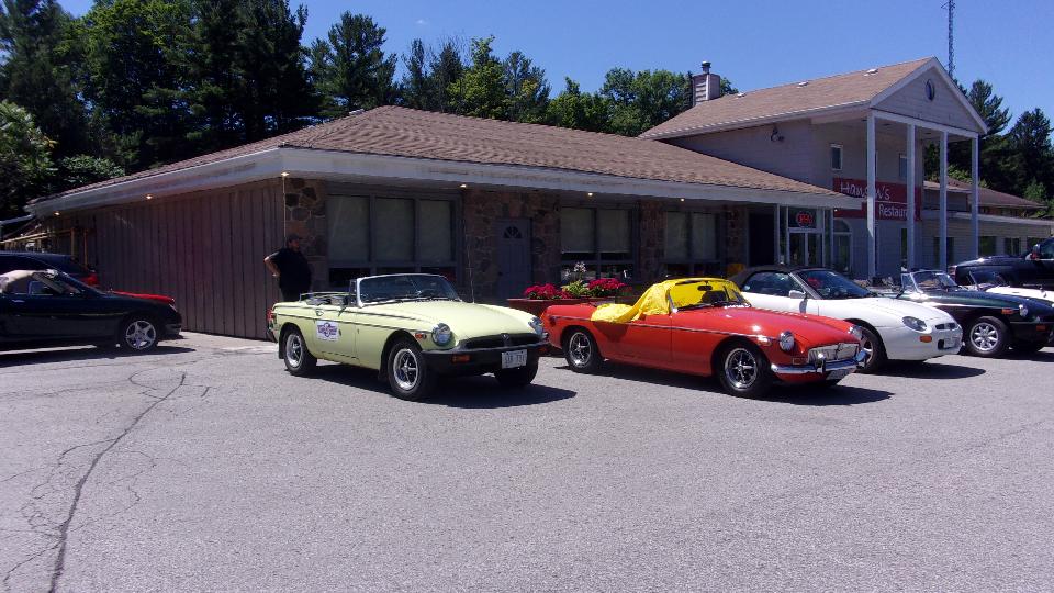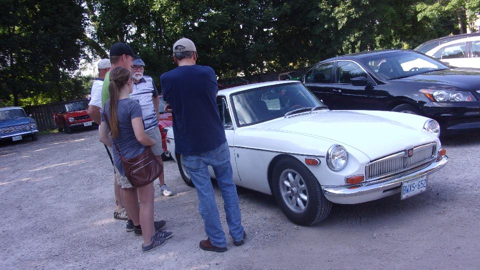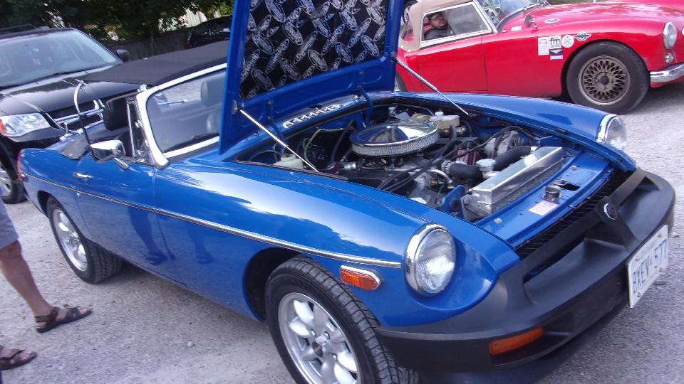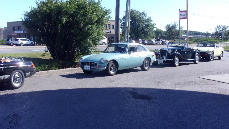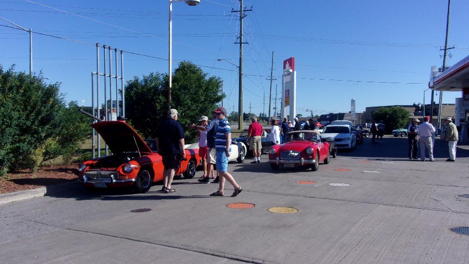 Made our way north for an evening meeting with Georgian Bay British Car Club in Collingwood, ON. Arriving a bit early, maybe 10 LBC in the car park, but lots more came later. Must have been at least 40 people, and apparently they knew we were coming. Featured history slide show for the evening was info on the MGA. Then the MGA guru got to do the pony show for a while, extending to at least 20 minutes when folks kept asking questions. Good time here, but then had to blow town for points west.