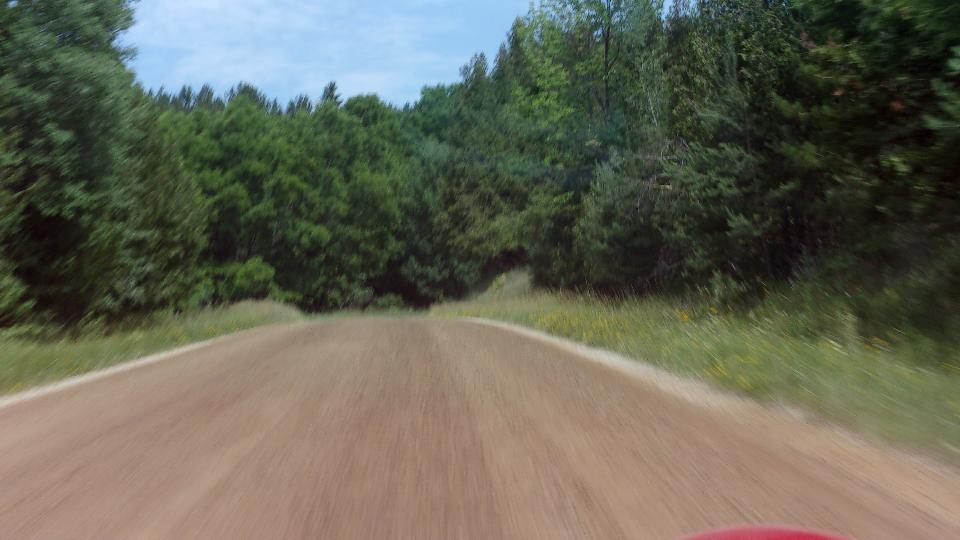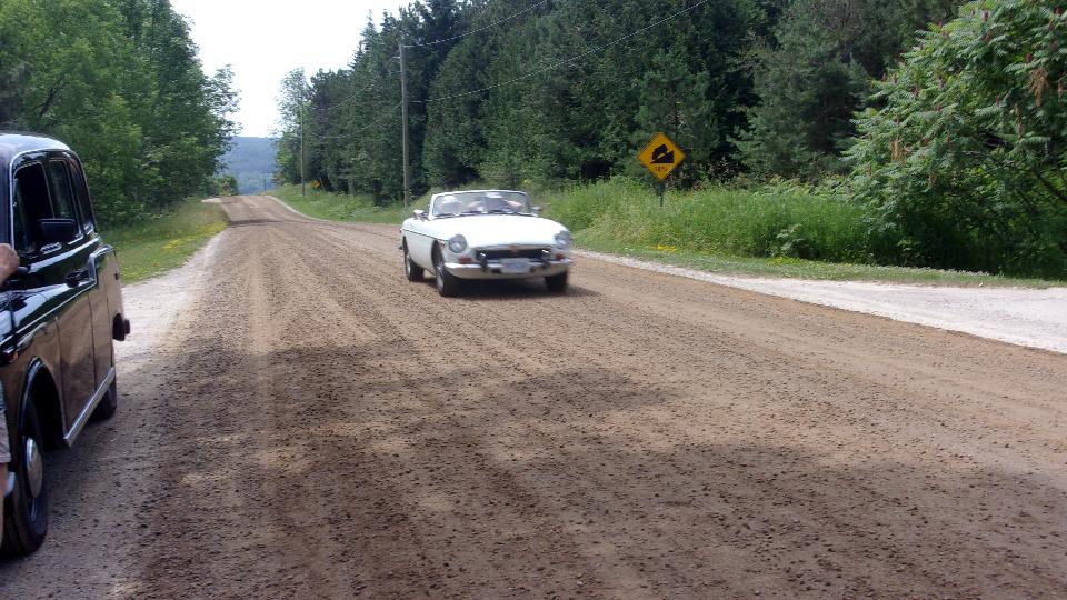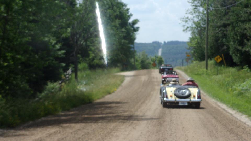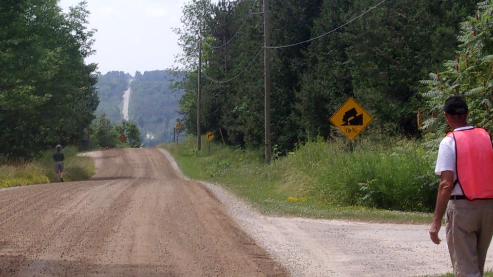 By 11-am we were caravaning several miles west to "the hill" on 3rd Line Road Ehs, which was a well graded gravel road with nice firm surface and not many pot holes. This could be fun, so we unhitched the trailer.