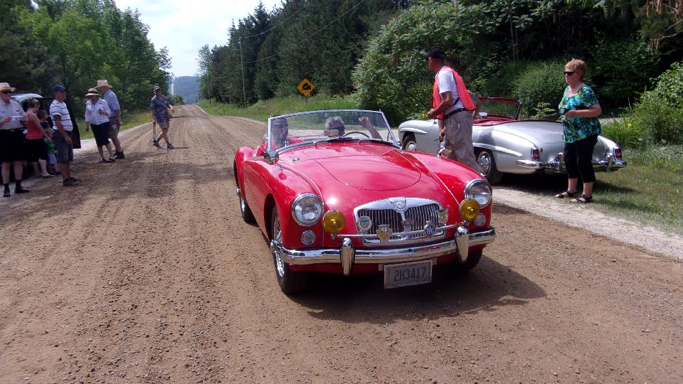 Up top, collecting cars, good time for a few pictures, I snapped a few of the MGs making it over the hill.
