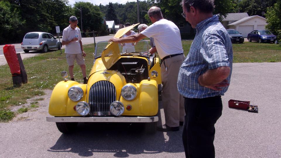 Half way along in a tiny little town of Hockley at a "T" intersection we ran across a Morgan (car not horse) dead on the road. Stopped to help push it off the road into a small parking area, and spent several minutes debugging.