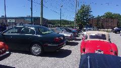 Nice assortment of vintage British cars though, at least 25 cars filling the small lot.