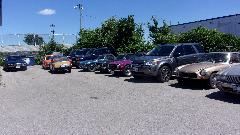 Since Canada Day occurred on a Sunday, today would be the official day off. Casual time for some tech questions, and some re-scheduling, and to consider that we should be shopping for (better) brake shoes and replacement trailer tires (yeah, every 8 or 9 months). Sitting by a window we noticed a fair number of classic cars out taking advantage of the holiday and nice weather.