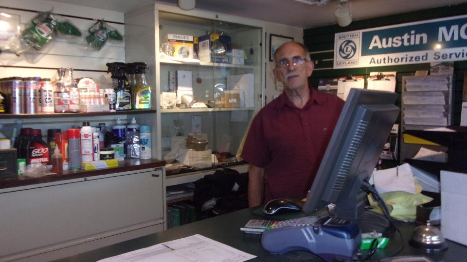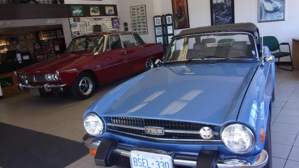 They sell and service modern and vintage British cars here, with few in the show room, a few in the service bay, and lots more outside. Being a service shop, they so have some parts in stock, just ask.
