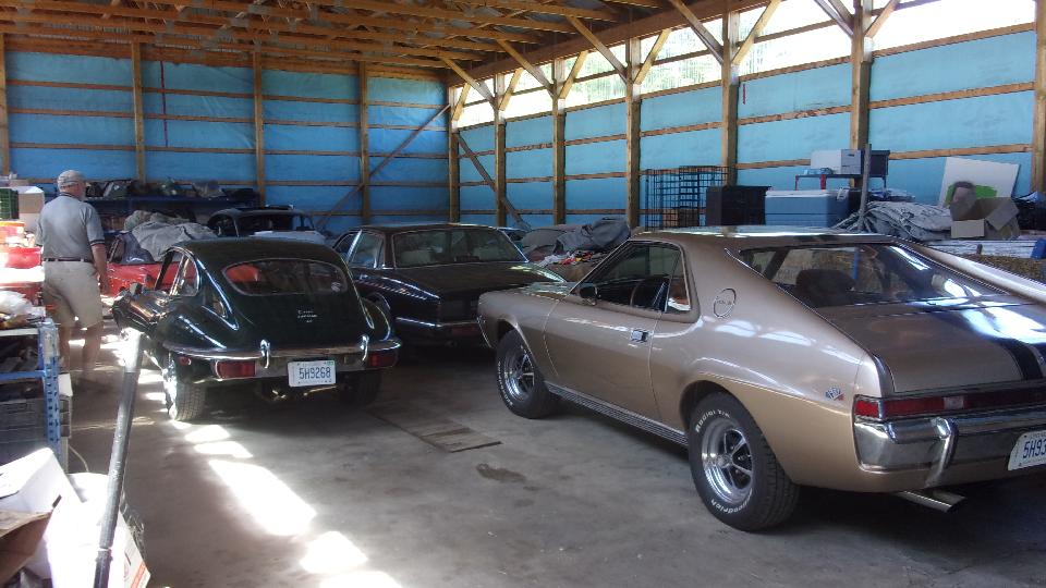 The building with skylights in the side walls holds some interesting inventory. The silver AMX (390) caught my eye immediately, as I used to drool over a new one belonging to a college friend in 1968. You may notice that Jaguars are a staple here. Three MGB over in this corner.
