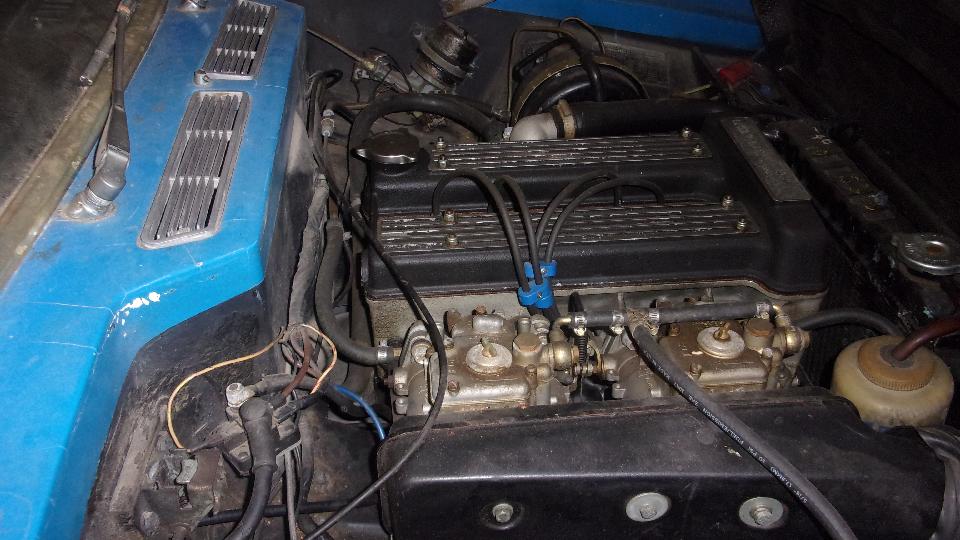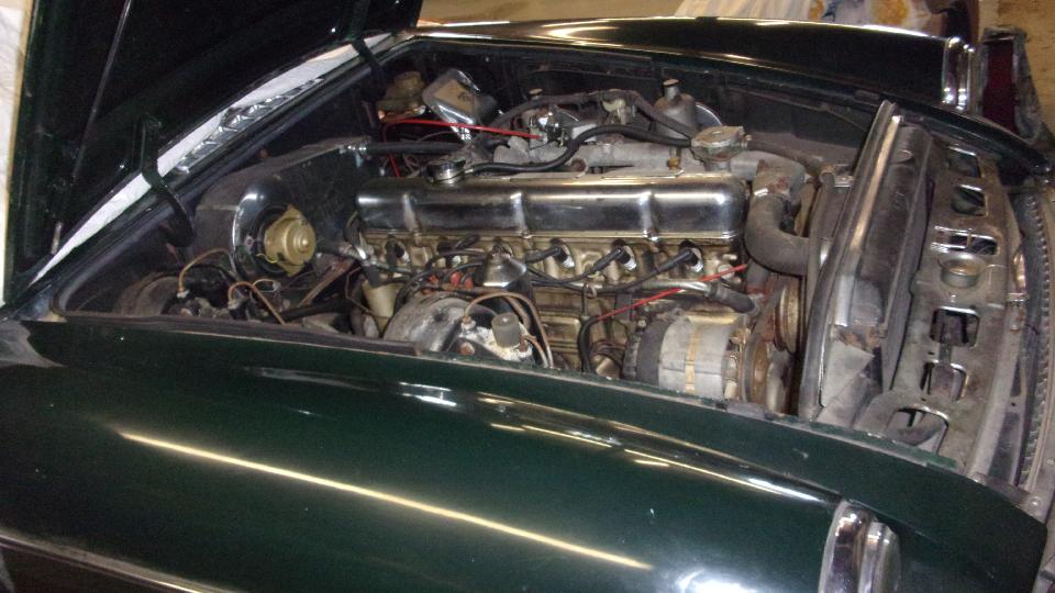 Hiding back in the corner was another Lotus Elan, this one running a factory cylinder head with Weber carburetors (less common than Zenith-Stromberg version), running but needs a tune up. Nearby was an MGC, intentionally missing the factory fan that would blow air on the carburetors.