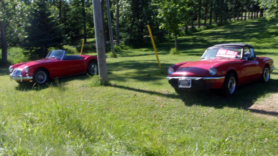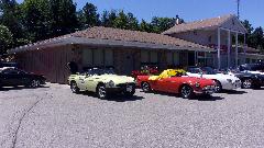 The second stop was at KM British Cars in Mono, ON. We drove right past this place the day before (on our way to the club hill climb and BBQ), but didn't have time to stop. Friday is supposed to be a slow-down day here, and just as well, as we parked between a couple other visitors. You may find British Classic Cars for sale here, and parts new and used. The service business is being scaled back these days, so customer auto service is limited to emergency break down service. No more employees, as the owner is finishing up cars in inventory in preparation for sale.