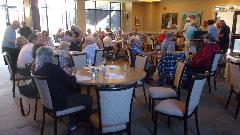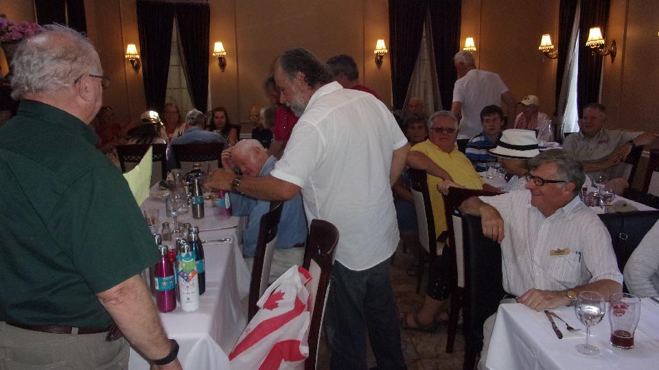 Smaller group this time, a dozen club members not counting ourselves, but a very friendly bunch. The restaurant owner was a British car enthusiast, relating to us a fascinating story about his Jaguar XK150 that was stolen last year, and eventually recovered. Then some history about Irish Immigrant soldiers during the American civil war, eventually trying to invade Canada with some small success but in the end not. The food at the Atrium was absolutely wonderful, so we all called out the chef with a huge round of applause.