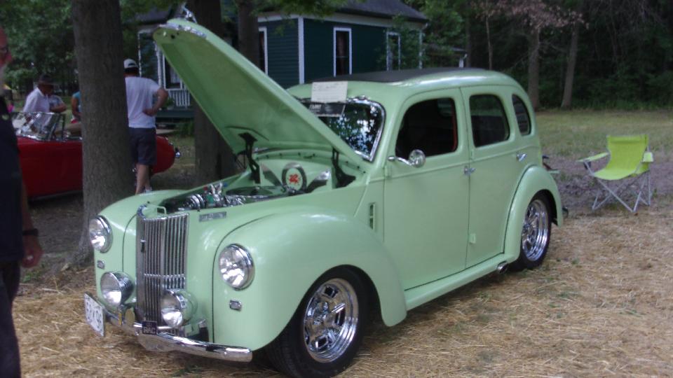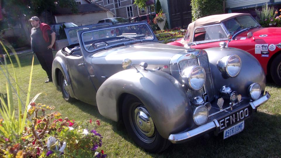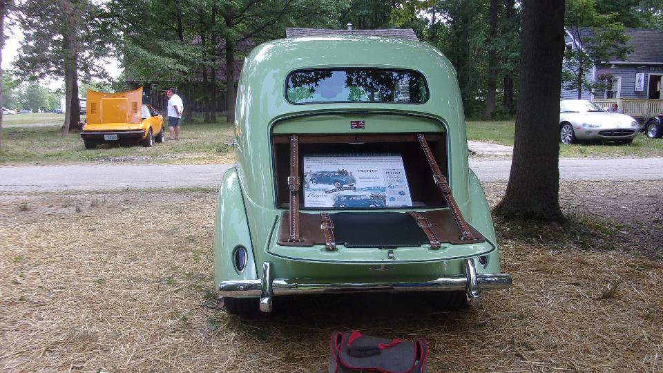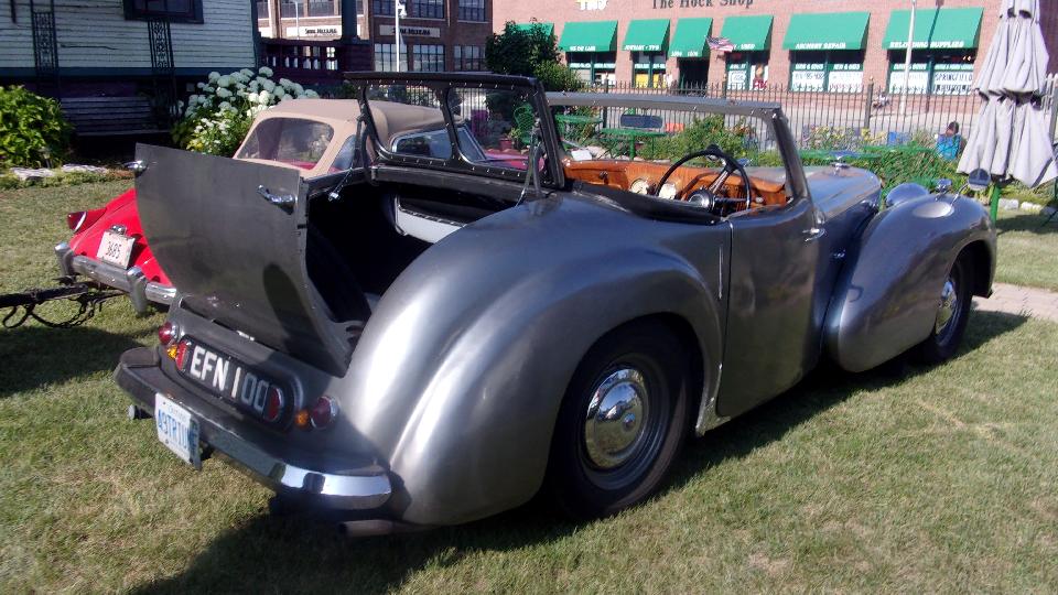 Another club meeting, three nights in a row, this time with Bluewater British Car Club from Sarnia, Ontario, but meeting across the river in Port Huron, Michigan (a true country crossing club). We parked next to a Triumph 1800 Roadster (1946-1948), or maybe it was 2000 Roadster (1948-1949), complete with rumble seat.