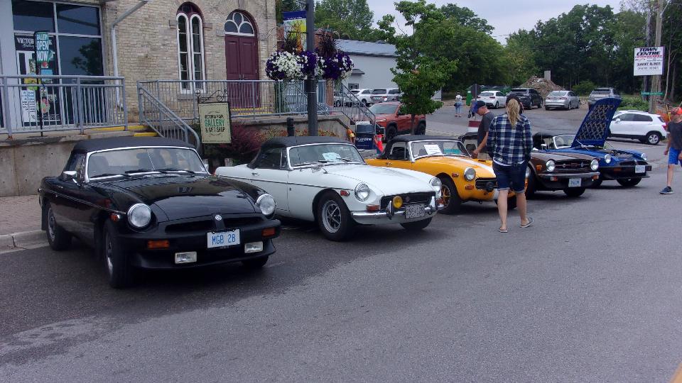 All British car show today in conjunction with Lighthouse Blues Festival. More than 20 cars, mostly from Kincardine And Area British Car Club, a couple from Michigan, and one incidentally from Illinois. Light sprinkles on and off but a generally tolerable day. It was a family day with most of the visitors coming for the music, but some interest in the small cars. Had chats with a few of the club members and several visitors.