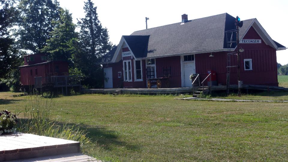 Today we paid a visit to the Canadian Transportation Museum & Heritage Village near Essex, ON. Purpose was for the All British Car & Bike Show. I didn't find time to go into the museum (rats). The prompt to go out of our way to get here was being a major event for the Windsor-Detroit MG Club. Arriving fairly early, I had time to take a stroll around the village while the cars were still rolling in. We can start with the train station, school (1907) and church (1885), all or which were newer than most of the rest of the village.