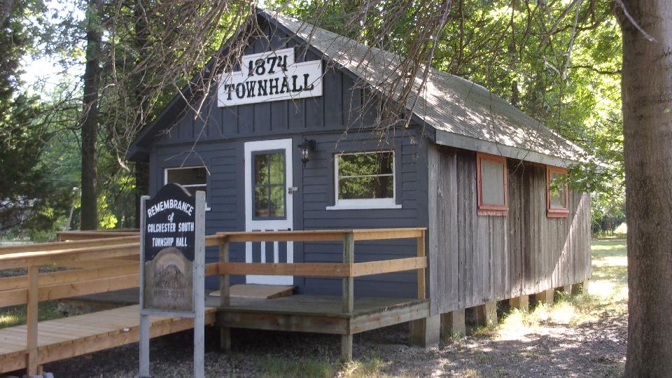 Town Hall (1874), a stationary engine with a restored business store, and the police station/jail (1895).