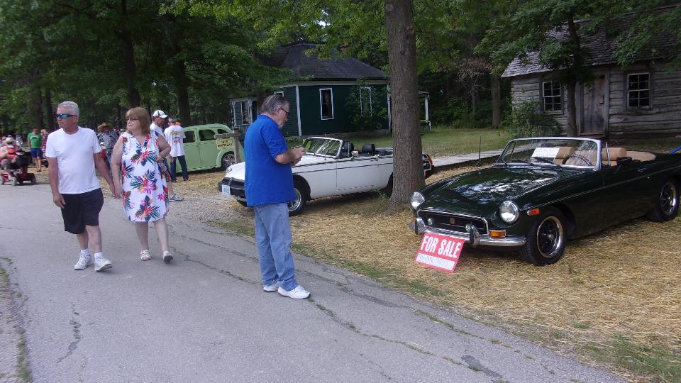 We found the shoe repair and barber shop (1930) to be a going concern, and haircuts really were $5 (but couldn't talk navigator into getting one). The Maggot house (1869) was one of the earliest clapboard buildings before running into earlier log cabins (1835-1826). Enough of that, let's get back to the car show.