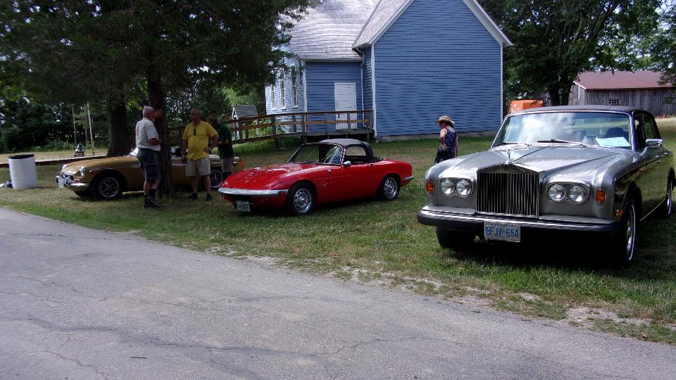 Meeting tonight with Waterloo British Car Club in Saint Agatha, ON. Drop in at 5:30 for a little tire kicking before dinner. First thing we noticed is that the Lotus 23 has to get home before dark (no headlights). There were a bunch of modern Jaguar, although I don't understand way a new Jag has to look like a Mustang.