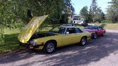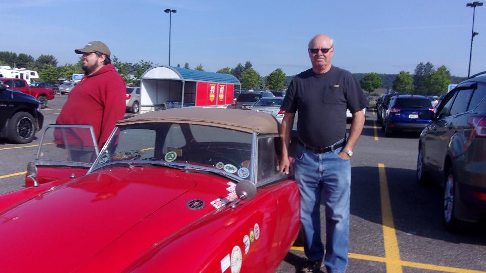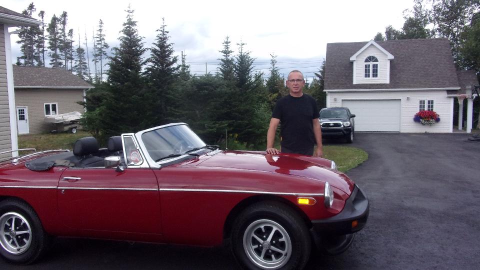 Morning in Gander, NL. No cell service here, but email works okay. Shot a couple of messages back and forth to our local friend, then toddled over to his house at 1-pm. Meet Andrew Proudfoot with his 1978 MGB which has been converted to dual HS4 carburetors. Very nice job of that with fuel vapor recovery and anti-run-on and crankcase ventilation still functional (but the cooling fan mounted backward). Had a nice chat before he had to get back to work. He is an air traffic controller at Gander International Airport. We had contact with this guy 15 years ago in 2003 when we were discussing some possible assistance for the MGA in Cuba.