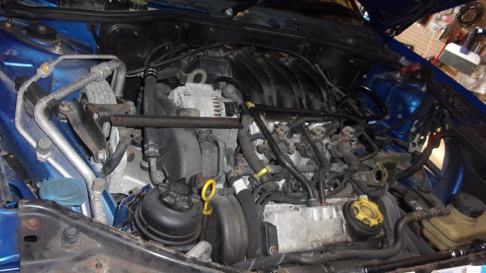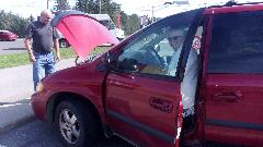 We were about to go to their place to check out his MGA. But first they needed a little diagnostic work on their Dodge Caravan. The engine was making some odd noise they described as "squealing", but to me it sounded more like a warbling hiss, and seemed to be coming from the top of the engine, maybe an intake air leak. Rev it up to road speed and switch off, and the noise instantly stopped while the engine was still turning at speed, no mechanical noise from the engine or belt driven accessories. So the noise was in the air intake or fuel injection area. The engine was running well otherwise, so we figured it was not going to blow up on the way home, and off we went.