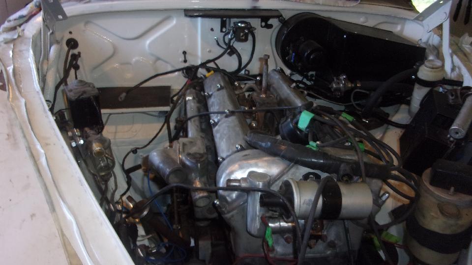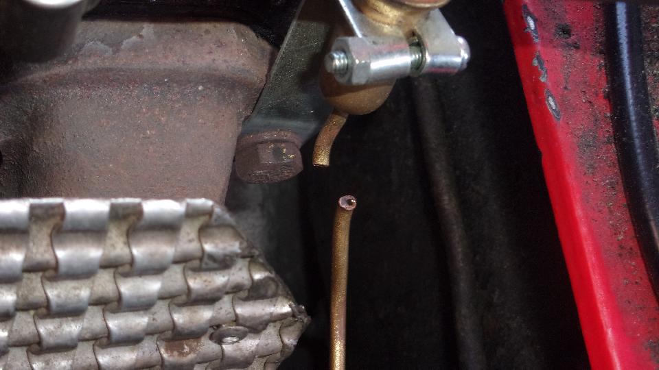 above the radiator. When we open the bonnet on my car for reference, I soon discovered a broken pipe for the distributor vacuum advance. So that's why it has been a little sluggish at low speed. Not long to retrieve a bit of small bore rubber hose from the trailer to reconnect the pipe.