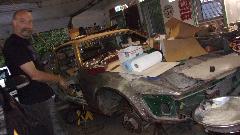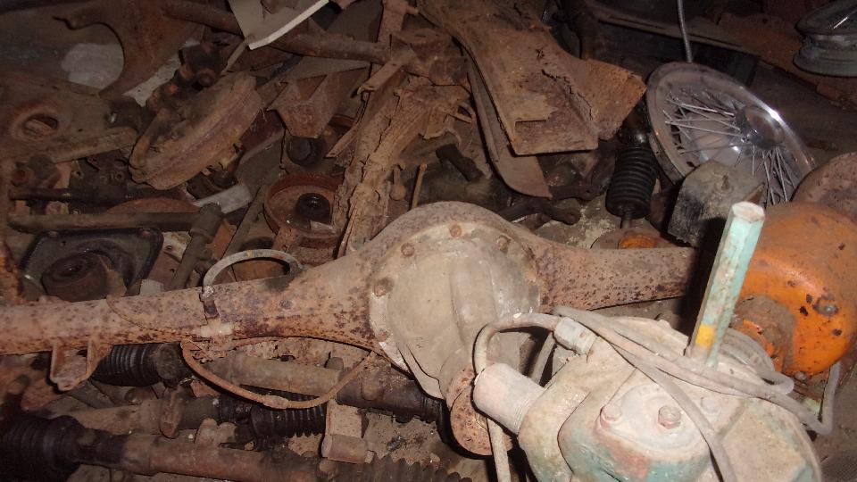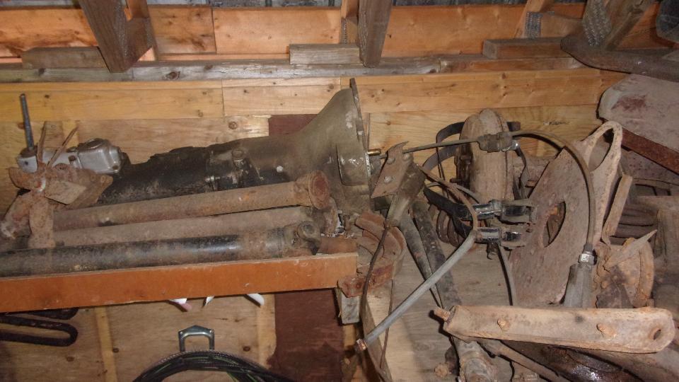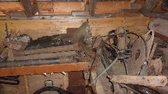Looking farther back in the shop (once you get past the crawler tractor) we found the rafters and attic full of parts, mostly left over from a second parts car during the MGA restoration work. He really needs to get rid of most of this stuff, some just rusty scrap, but some serviceable parts needing a new home.