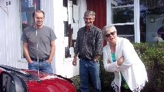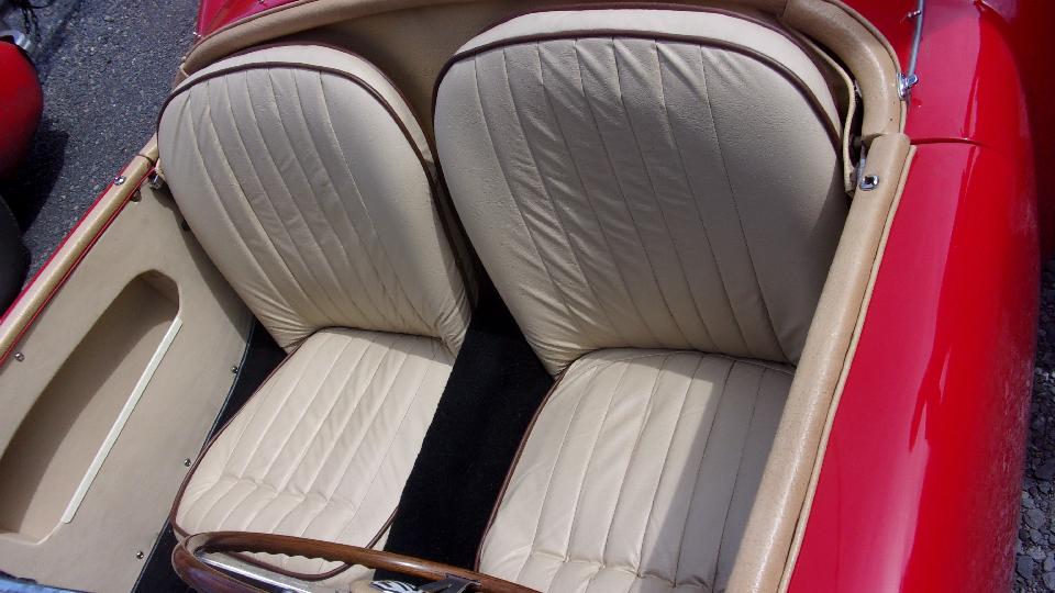 I had to ask about the gray interior, and was amazed to find that Real had rebuilt them himself, including cutting ans sewing the leather covers. Wow, this is only the second (non-pro) person I have known to be so bold. Considering that the brake pedal was working very near the floor, we spent a few minutes to lengthen the brake master pushrod to raise the pedal height (with very good results). About that time a neighbor friend dropped in for a little jolly jesting, and eventually we all headed to a local bistro for a late lunch before we hit the road again.