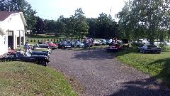 Looks like we were the first to finish, so I suppose everyone else took a mid-tour pit stop somewhere. I think the Pontiac Solstice and the Mini were resident here. The rest of the tour cars began to roll in en-mass about 20 minutes later until they were blanketing the side lot and roadway. It was a nice party, pretty much the same friendly folks as most of the British car club meets, and many of them were particularly interested in the long distance MGA. Guess I was busy eating and chatting, because I wasn't taking pictures of the crowd (sorry), but I did get a walk around later to find more storage and shop space out back.