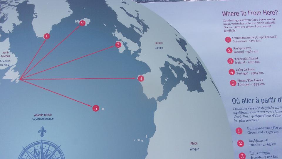 Looking across the ocean (at least in diagram) we have Greenland (1), Iceland (2) and Ireland (3). Just beyond Ireland there is Scotland and England (think MG), and then France across the English Channel. The primary landmark here would be the lighthouse, which has an odd story. I climbed about 150 steps to visit the lighthouse up close, just to find that I wasn't really there yet. I turned around long enough to snap another picture. If you can spot it, the MGA is just left of center in the car park.