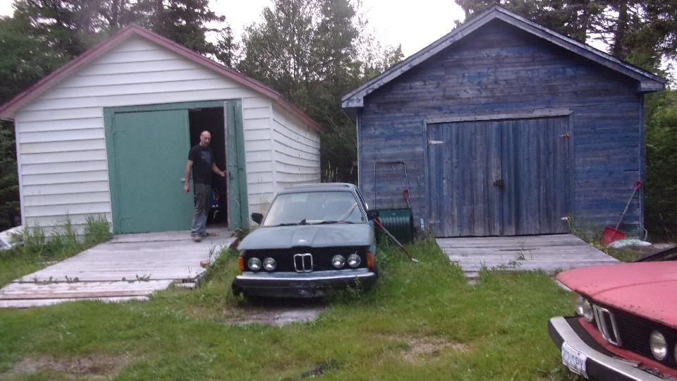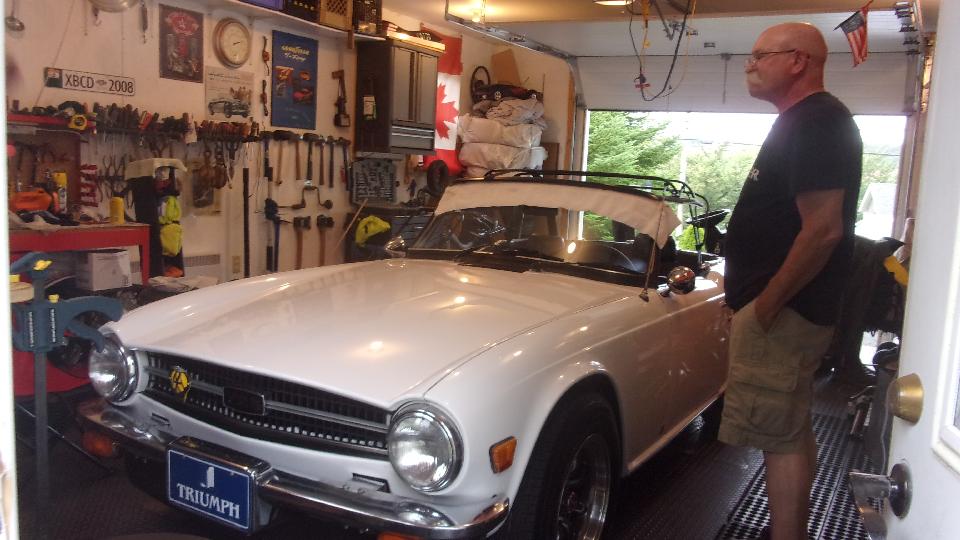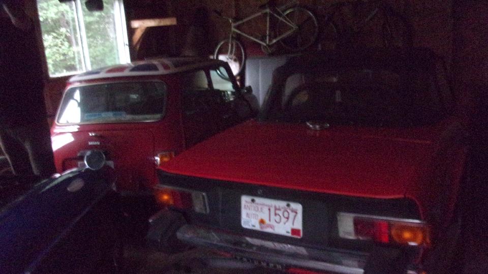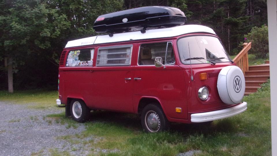 Several miles along we stopped to visit Steve Hicks in Torbay, NL. Not just a new friend, but also a shop to add to our Shops list working on German and vintage British cars. He restored the VW Westfalia some years ago, and it has been getting a good work out since. Off to the back lot to check out the toys in storage.