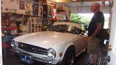 Say hello to Dave Warr, and after a bit we get to see some of his toys. A modern Jag sedan in front, an older Jag sedan in back, a GT6+ in the middle, half of a Spitfire on the left, and a Pontiac Firebird way in the far corner. His daily driver is a Jeep Liberty, and something similar for his wife (remember where we are).