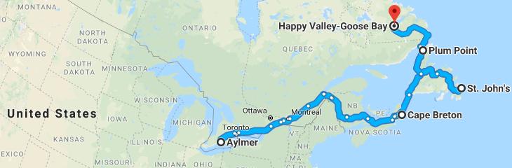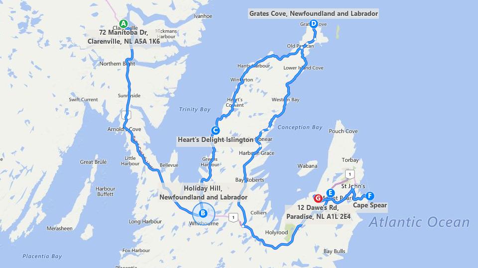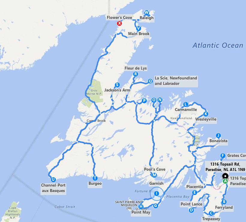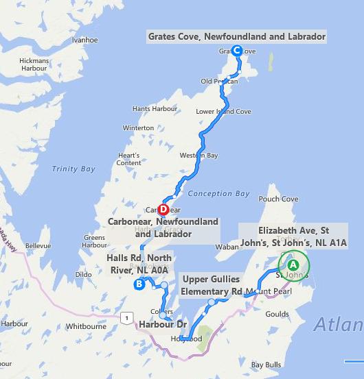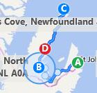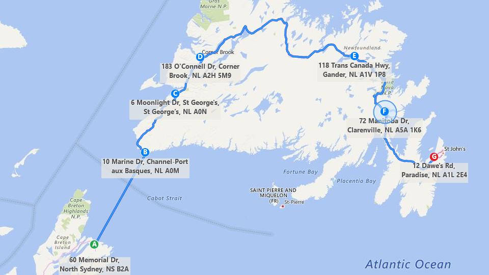 Sitting in Clarenville, NL today ("F" on this map). Got an email response, now looking forward to an