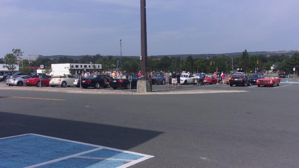Met in a shopping center in St Johns, NL this morning. Here's a new encounter, solar powered parking meters. Turned out to be free overnight and free on Sundays, so no feeding needed today. Someone counted 36 cars. Don't want to bore you with all the Beemers, Miatas, VWs and Mustangs, but there was one TR4 in the group to meet and greet, and at least one Mini.