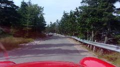 (hydro-electric plant), through a small town, and then (thankfully) back onto paved road for another 160 miles. Still lots of twisties and many 10% to 12% grades up and down. Car having a little grip problem in the turns near the end, so slowed it down a bit to be safe. We finally hauled into Baie-Comeau, QC on the St Lawrence River a few minutes before midnight, and tanked up the petrol for the fourth time in one day. 524 hard miles logged in 16 hours today.