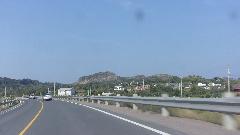 with twists and hills, washboard and potholes, top speed about 40-mph in the dark (sometimes slower). After a tight and steep down hill switch back series into a valley we crossed a dam