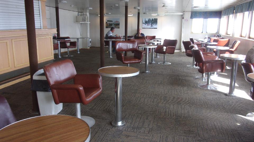 Fueled up first thing in Plum Point, NL, followed by a short 10 mile drive to Black Duck Cove where we intended to catch a Ferry out of St Barbe. Good that we drove up the night before, because this morning the wind was up and it was raining enough to discourage driving. This would also allow is to catch the morning ferry and gain five hours on our travel schedule. There was a slight delay while they were deciding if the ferry would run or not (close eye on the stormy weather), so we had time for breakfast in the port cafe (Dockside Motel Inc). We did finally get the ticket, and the 10;30 ferry launched an hour late. Figure 90 minute crossing to Blanc Sablon, QC, estimated landing 1-pm. Not sure yet when we get out of Newfoundland time zone and back into Atlantic time, but we get a half hour back whenever that happens. The monster with the open beak finally swallowed us up, and I found a nice spot in the aft lounge to prop up the computer do a little grunt work.