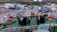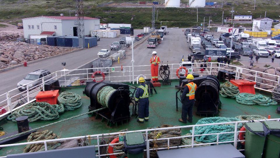 Show up two hours early for check in and boarding, 6-hr 20-min sailing time, half hour to get off, another half hour lost from Atlantic time zone to Newfoundland time zone. That pretty much killed the whole day.