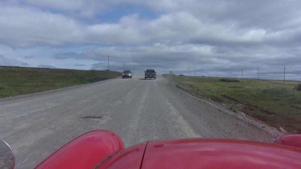 Immediately off the ferry we hung a right to cross the provincial line back into Newfoundland And Labrador (Labrador being the mainland part of the province). From there we headed north a few hours to Port Hope Simpson for another fuel stop and a late lunch. Hey, who's idea was this anyway? The ratty gravel road was a rude awakening to get us started in Labrador.