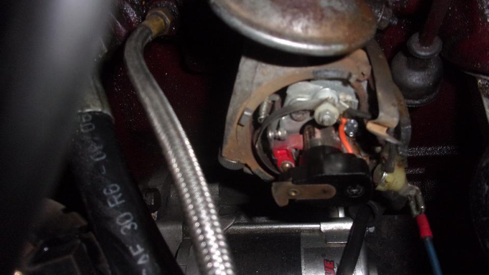 Car was hard starting in the morning, even though it ran okay last night. Ran on 3-cylinders at low speed, better above 2500 rpm, then cleared up after a few minutes driving. After a long lunch break, it was hard starting and ran bad again, so time to fix it. Just ignition points out of adjustment, barely opening at all, easy fix.