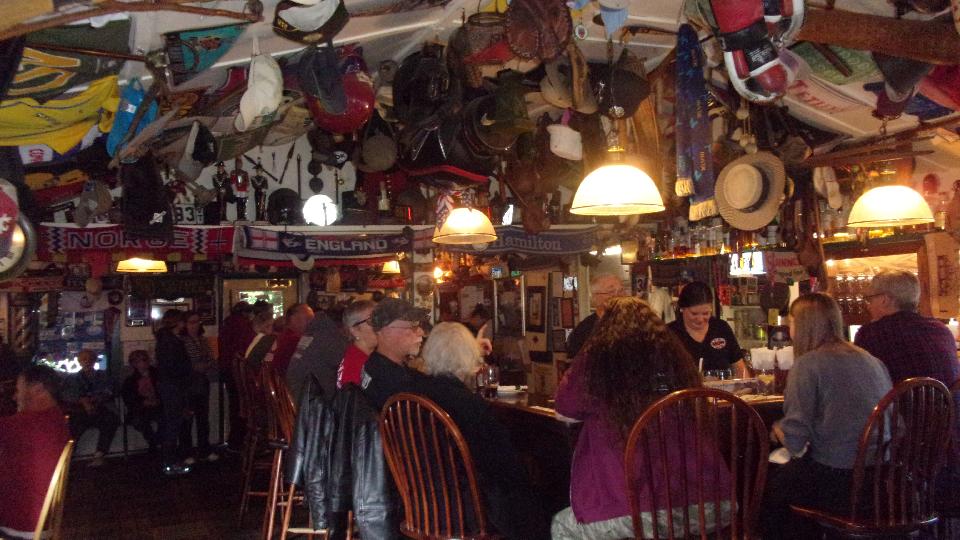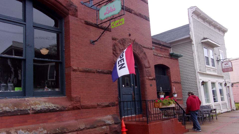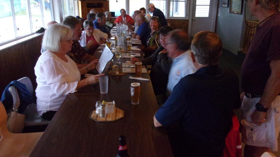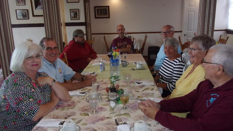 Drove a couple hours in light rain this morning for a lunch time meeting with BATANS Western Valley group in Annapolis Royal, NS. Parking tight on the streets, but found plenty of space to park on the wharf. The impressive brick building had Lola's Cafe on the first floor. Mid day and mid week meeting, figured it would be some retired folk, and it was. Seven club members aside from us, nice intimate group, got to chat with everyone this time.