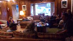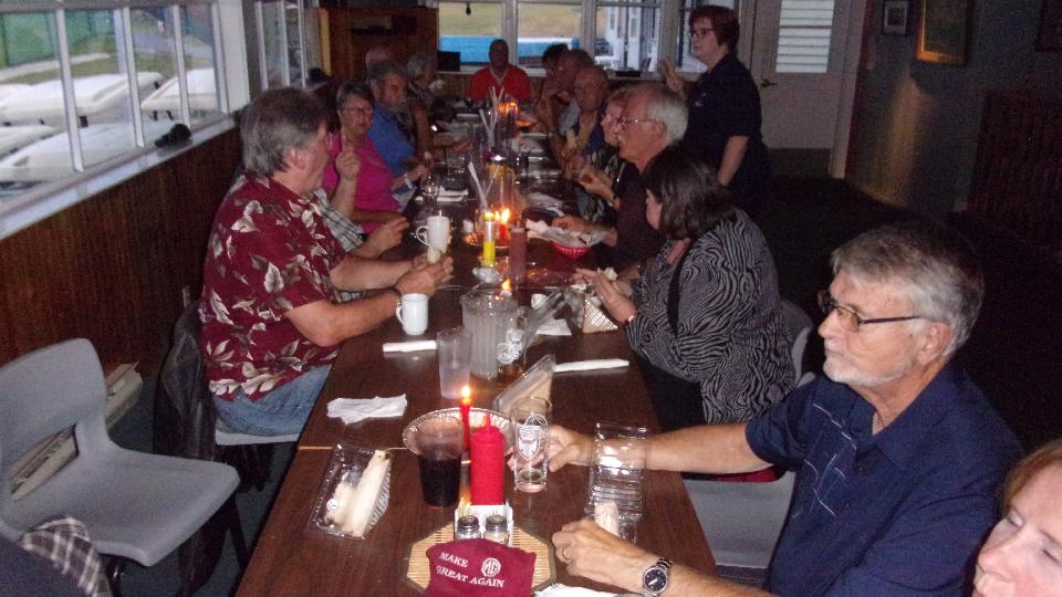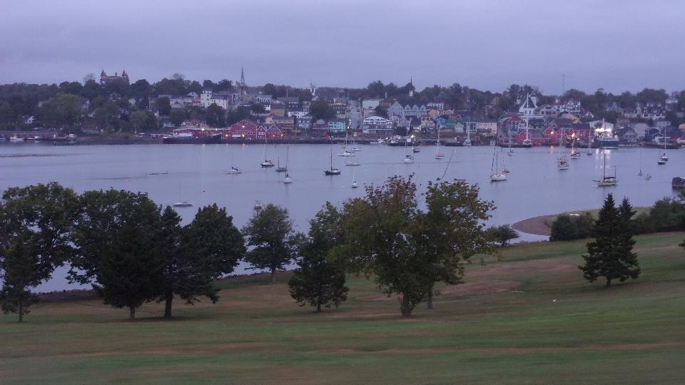Had a meeting with BATANS South Shore group this evening, meeting at the Bluenose Golf Club in Lunenburg, NS. A bit of a sprinkle when we arrived, no problem counting LBC's, just one AH 3000 in the car park. Inside about 20 people, mostly wimped out and drove something else. Off to a good start, ordered dinner, had the introductions, and a few minutes about what we were doing. Got a good picture out the window of what is touted to be a world famous harbor. Then the lights went out with an area wide power outage, and most of the dinner orders were suddenly off the slate. This turned into an intimate candlelight dinner with packaged sandwiches from the lounge deli down the hall, after which we all settled the tabs in cash when the electronic tricks were dead. Stuff happens.