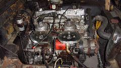 Pulled another hose off the carburetors, pumped fuel through the line until it came out clean, and reconnected the hose to the carbs. Didn't want to go immediately, maybe some stale fuel in the carburetors, so we gave it a brief shot of starting fluid to get it running.