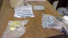 But the real reason we were here was to celebrate Tom's production of some specialty items for the T-type cars. He makes some silicone rubber gaskets for valve cover and tappet chest cover, high quality threaded studs for cylinder head and main bearing caps, precision fitting brass core plugs, valve cover thumb nuts, and a heavy duty stainless steel cover plate for back end of the cylinder head. The most unique part of all was the stainless steel thermostat housing. Not sure how that was done, but it looks like a casting before all the machining was done. He also supplies special upgrade halfshafts, magnetic drain plugs, head gaskets, and oh yes, a supercharger kit.
