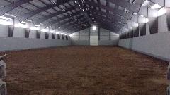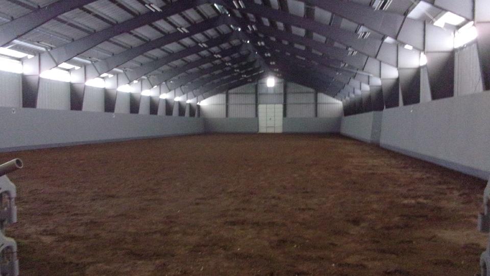 The large building below is an arena with internal corrals for a dozen horses (among other things) and a large exercise area. Yes they built this too, but obviously not from the local timber. The lady likes horses, and it is tough to ride them outside during the severe winters in Maine.