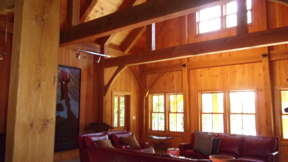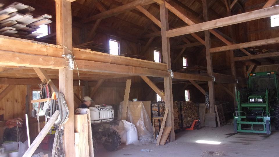 Next up was the barn, which looks like something built 100 years ago but is relatively new, and I suspect it will still be here 100 years from now. The large timbers were hewn from Hemlock, which you pretty much can't find any more. Some of the queen posts are 30 feet tall. The smaller building is a wood shop, built with similar construction from the local timber.