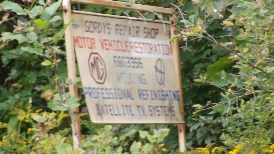 Our first stop today would be Gordy's Repair Shop in Bowdoinham, ME. Interesting sign, MGs and TVs? Meet Gordon Perry. He does service and restoration wotk on MGs (and maybe other vintage British cars as well).