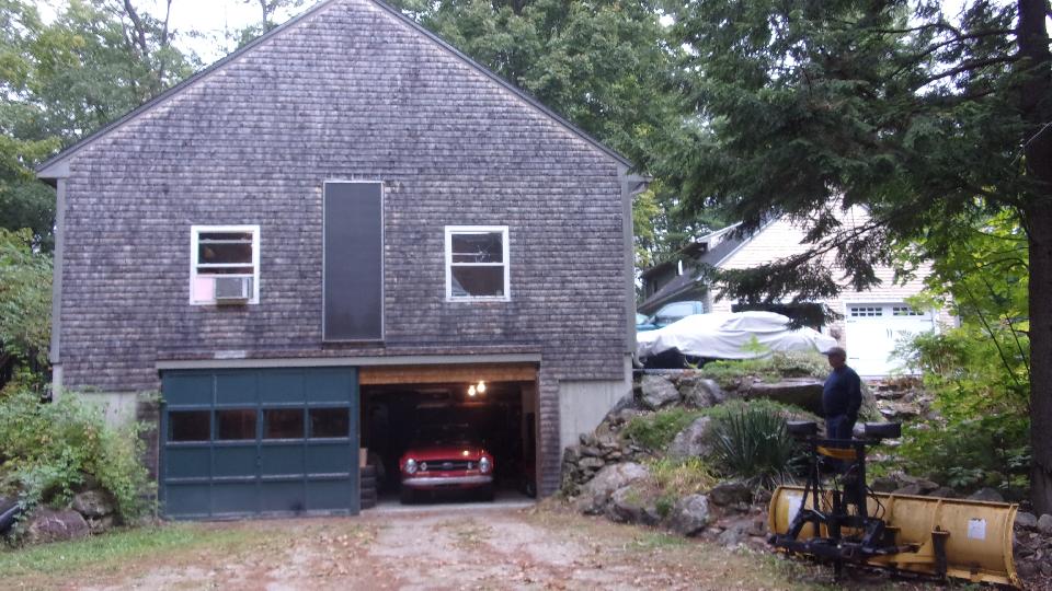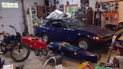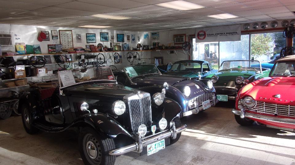 Next up was Penn Ridge Motors in Norway, ME. Meet the owner Tim Hutchisen who works on all British marques and specializes in Triumph and MG. In his home garage (to the right of the truck) is his daily driver TR3. In the work shop (to the left) was a very nice TR7, along with some other toys. He is heavy into soapbox racers. The bike is his son's vintage Triumph. Under the covers out front were a Triumph Stag and a Spitfire.