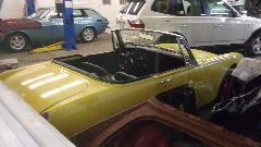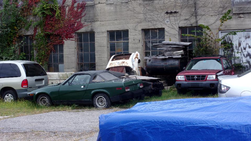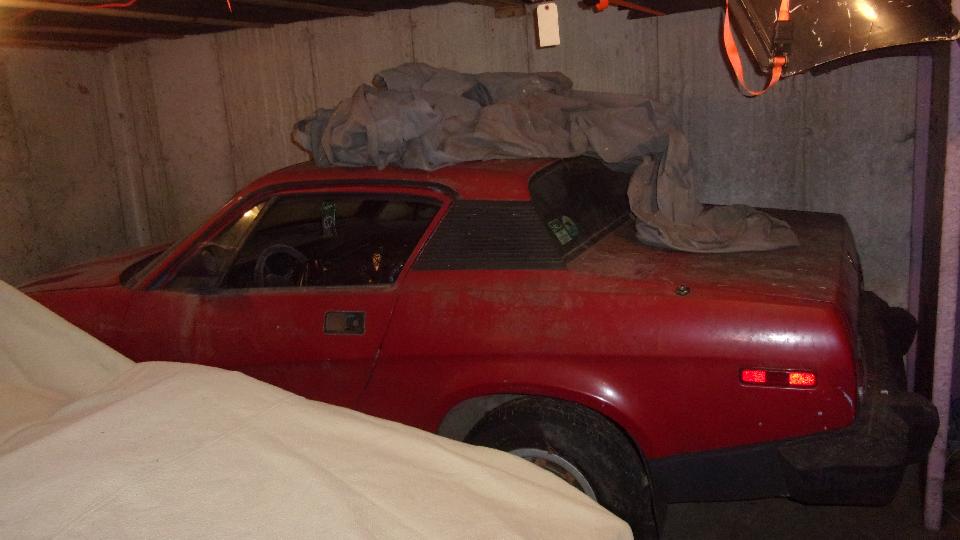 On the lower level of the same shop were a few more cars, starting with a TR6, a beautiful black TR3 show car under the cover, and an orphan wedgeling TR7 in the back (possibly looking for a new home).